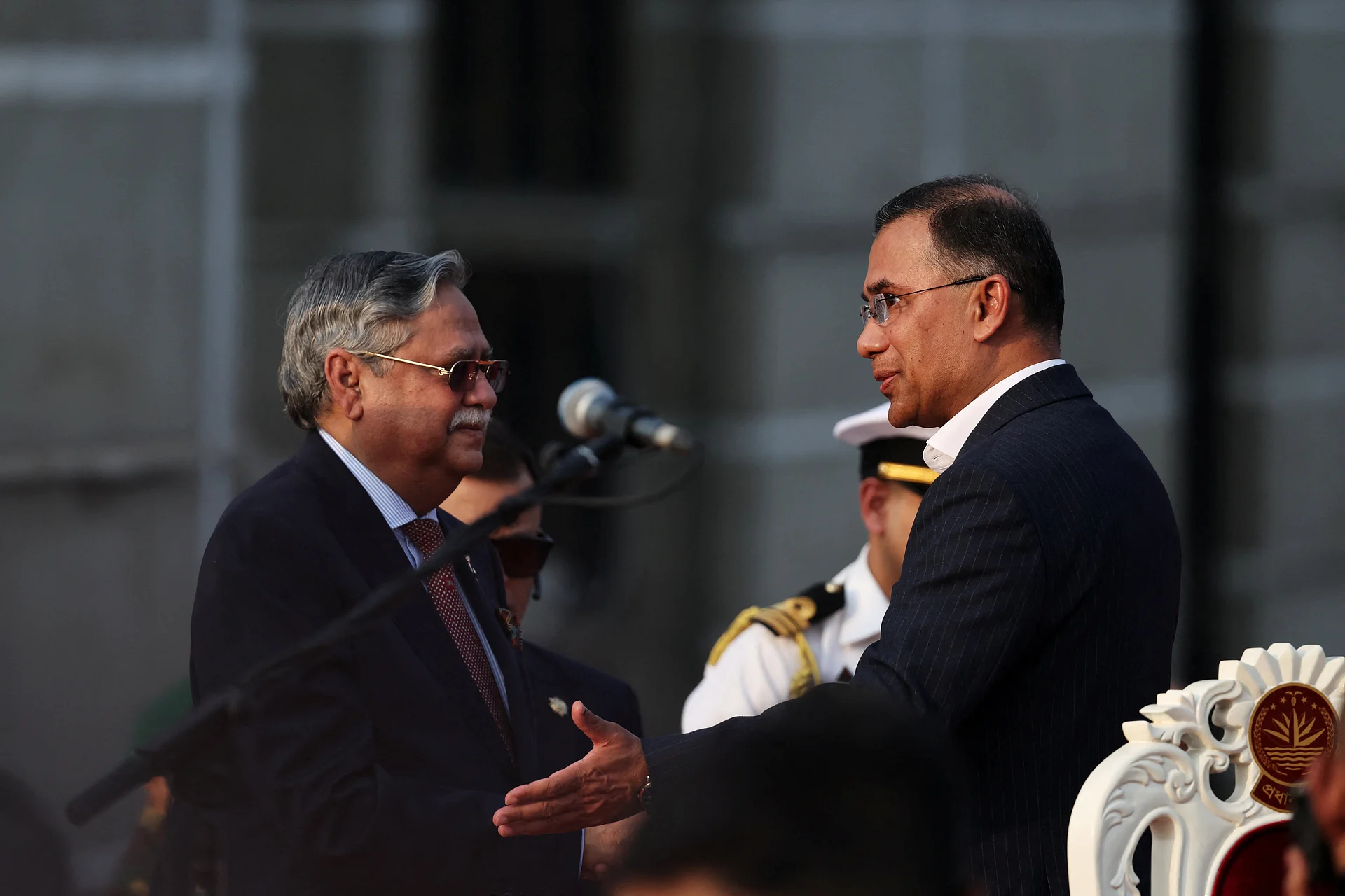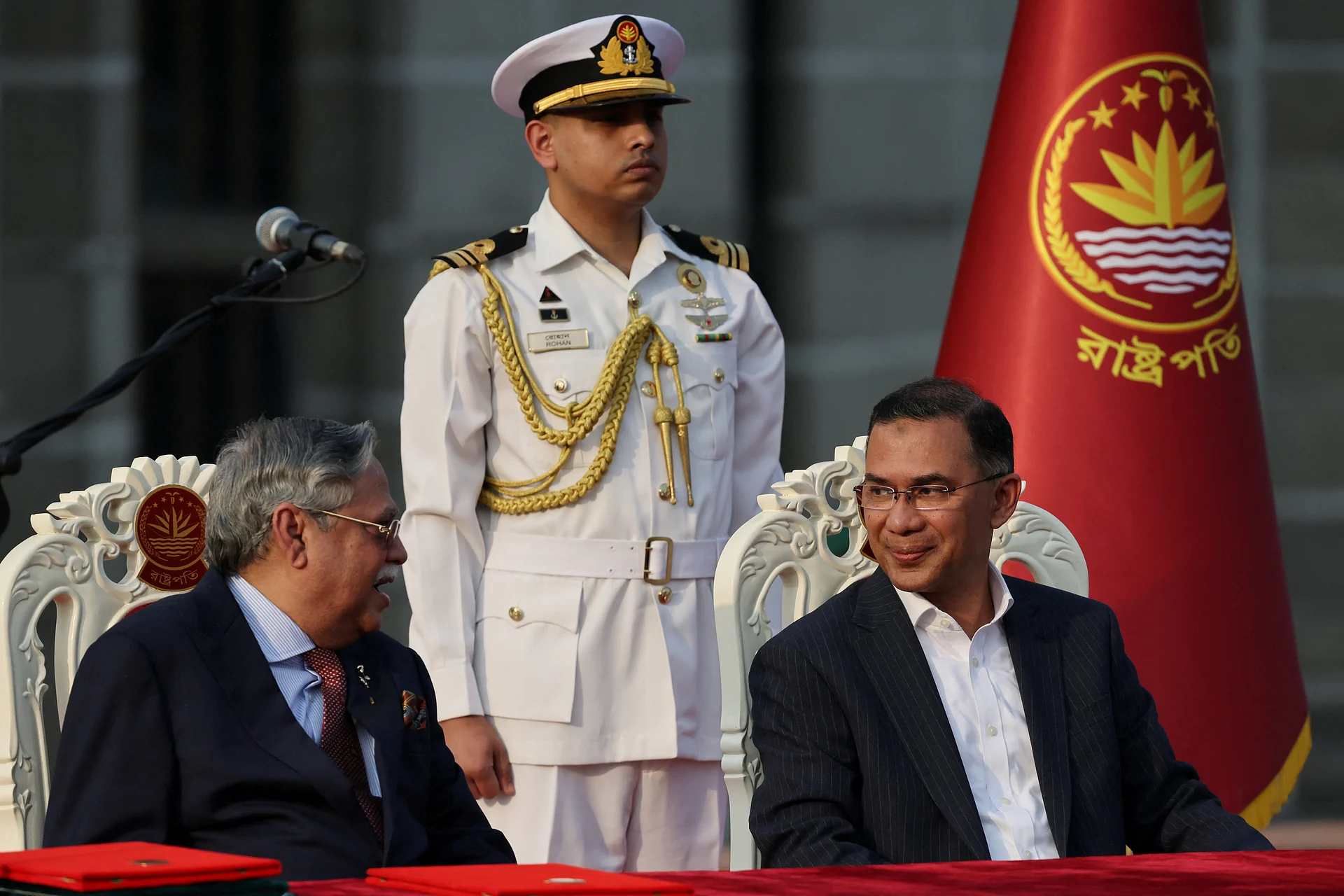 ত্রয়োদশ জাতীয় সংসদ নির্বাচনে নিরঙ্কুশ বিজয় অর্জনের পর সরকার গঠন করেছে বিএনপি জোট। শপথ নিয়েছেন বিএনপির চেয়ারম্যান ও নতুন প্রধানমন্ত্রী তারেক রহমান এবং তাঁর মন্ত্রিসভার মন্ত্রী ও প্রতিমন্ত্রীরা। দেশি–বিদেশি অতিথিদের উপস্থিতিতে এ শপথ অনুষ্ঠান হয়। ছবিতে শপথ অনুষ্ঠানের কিছু মুহূর্ত: